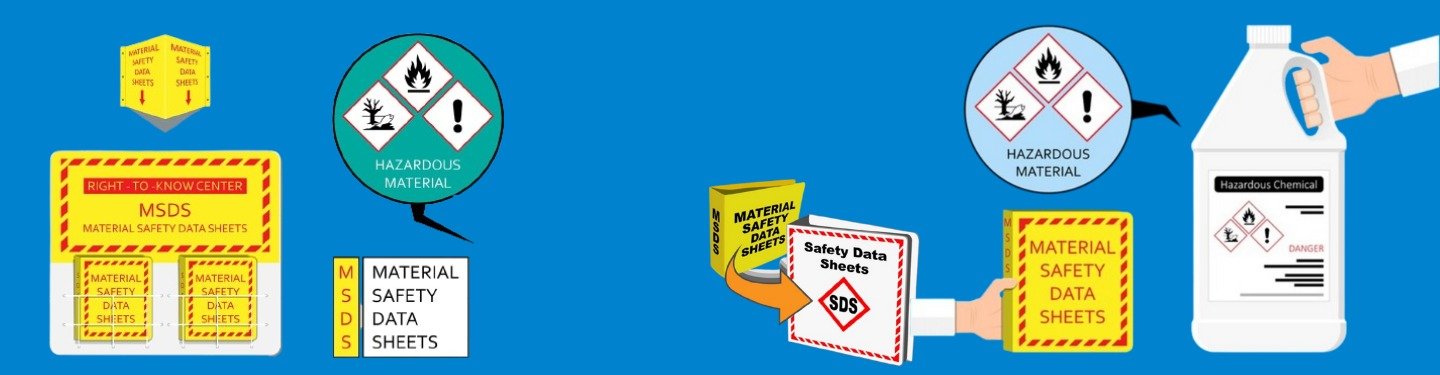 MSDS is the traditional label; SDS adopts an international sixteen-section format under GHS.